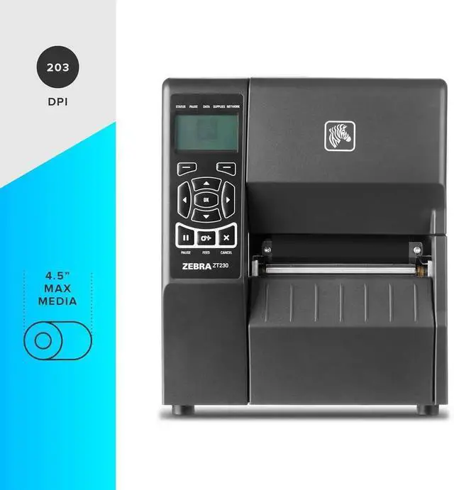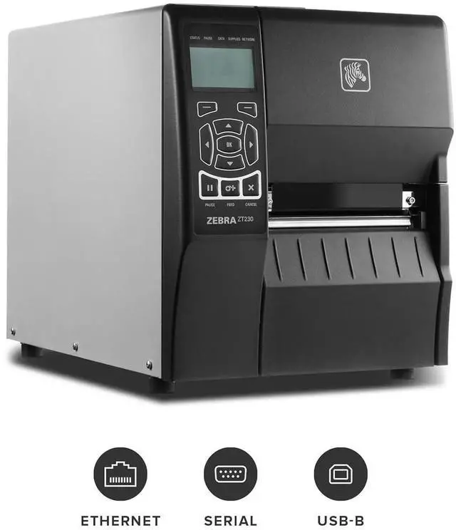 Ze bra ZT230 Thermal Transfer Industrial Printer 203 dpi Print Width 4 in Serial USB Ethernet ZT23042-T01200FZ