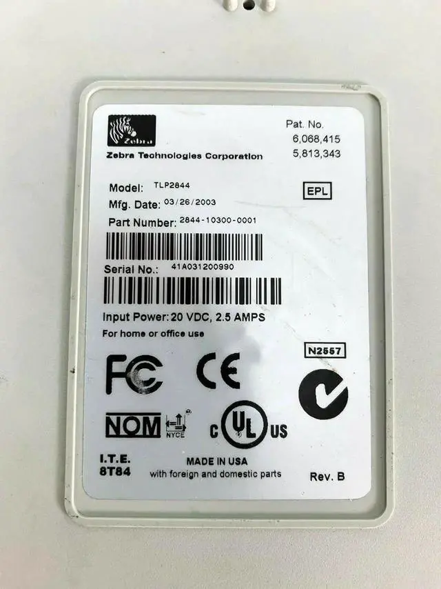 • Tekswamp #S6B Ze bra TLP 2844 Printer #2 2844-10301-0001 W/Adapter USB Power Cables Print