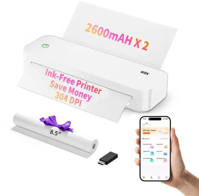Ultimate Compatibility&Multifunctional printer- The Wbk Bluetooth printer is compatible with smartphones, tablets, and PC, requiring no additional purchases of equipment.The Wbk tattoo transfer printer supports Android, iOS, Windows, and MacOS.Concurrently, the Wbk portable printer doubles as a device for printing documents and images,supports thermal folding paper and thermal roll paper, US Letter&Legal, A4 size thermal paper