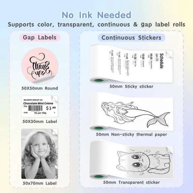 Included a roll 2inch white continous paper & a roll 52x30mm gap sticker paper. Ideal gift for family, friends & colleagues.