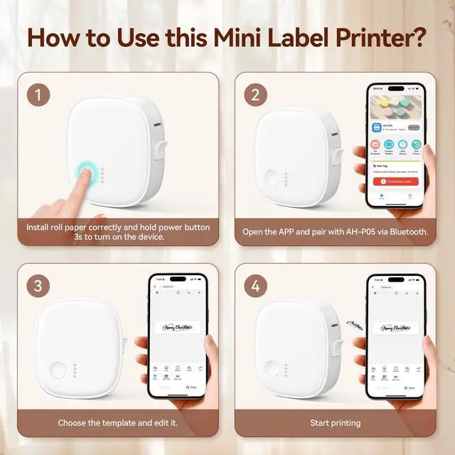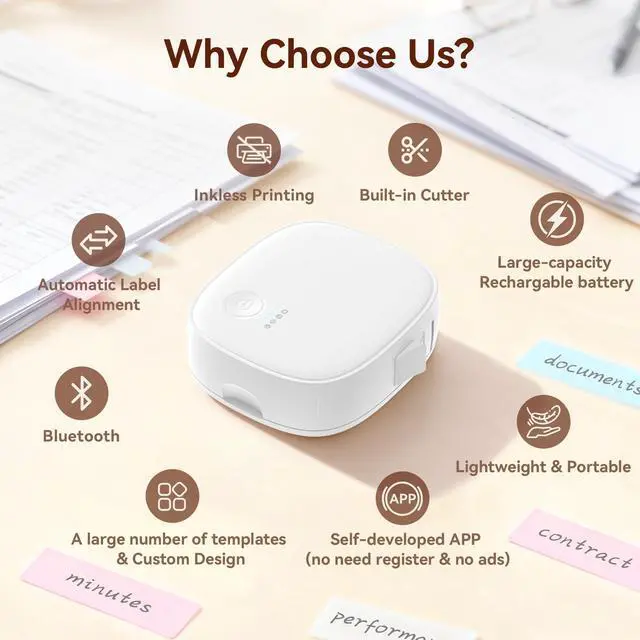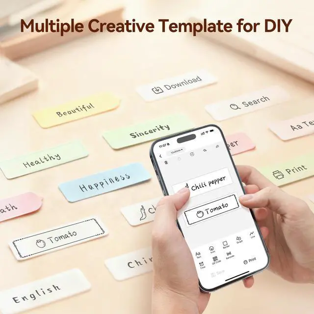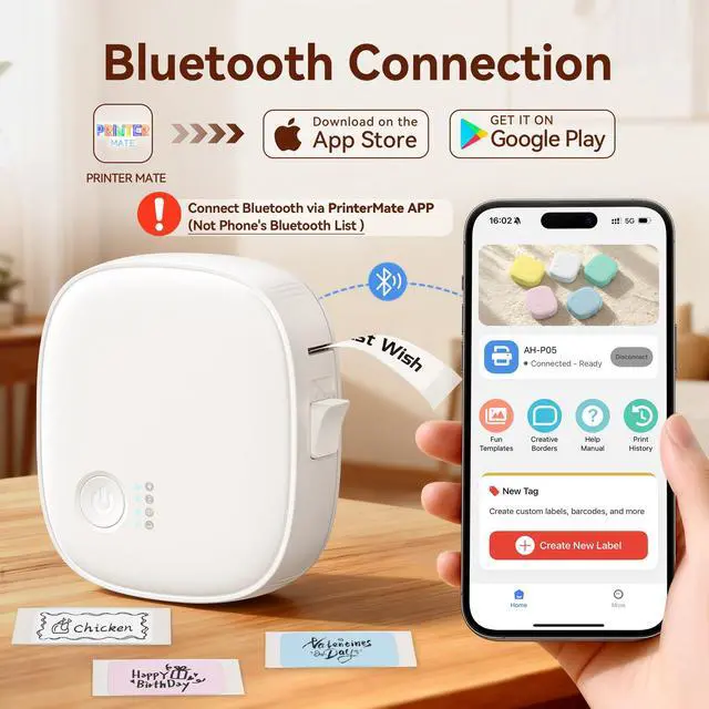 1 Smart & Portable Label Maker Print Anytime, Anywhere No cables, no hassle. Connect instantly via Bluetooth and start printing custom labels in seconds with the intuitive PrinterMate app. Design your own labels or pick from a vast library of ready-made templates. Perfect for organizing your pantry, labeling school supplies, or tidying up your workspacebring your ideas to life directly from your phone.