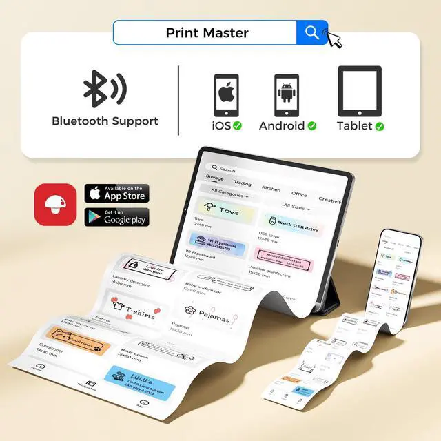 Easy to use. Download APP “Printer Master”, turn on your phone's Bluetooth and connect the D32 labeler in the APP.