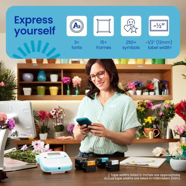 Get creative with a choice of 15+ frames, 250+ symbols, 3+ fonts, and 7 styles. PLUS, access even more options using the Brother Design&Print2 app(1).