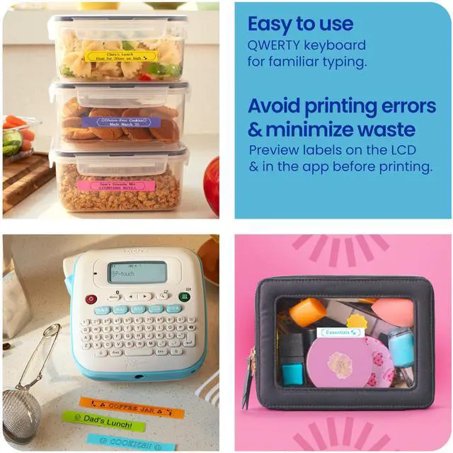 Typing is easy with the full QWERTY keyboard. Preview before you print on the LCD screen or in the app to avoid errors, typos, and minimize waste.