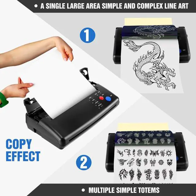 Tattoo Transfer Stencil Machine is a machine for professional tattooing as well as tattoo enthusiasts, it allows you to convert your designs directly from original drawings to stencil paper in a very short time, making it easy to transfer to the skin, it is a reliable copier !