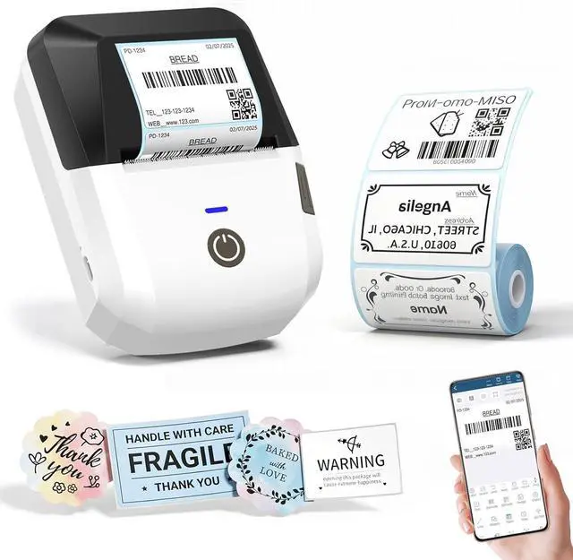 Portable Thermal Printer, Bluetooth Label Maker Machine with Tape, Barcode & Small Receipt Printing Mode, USB Wireless, Compatible with Android iOS Windows macOS