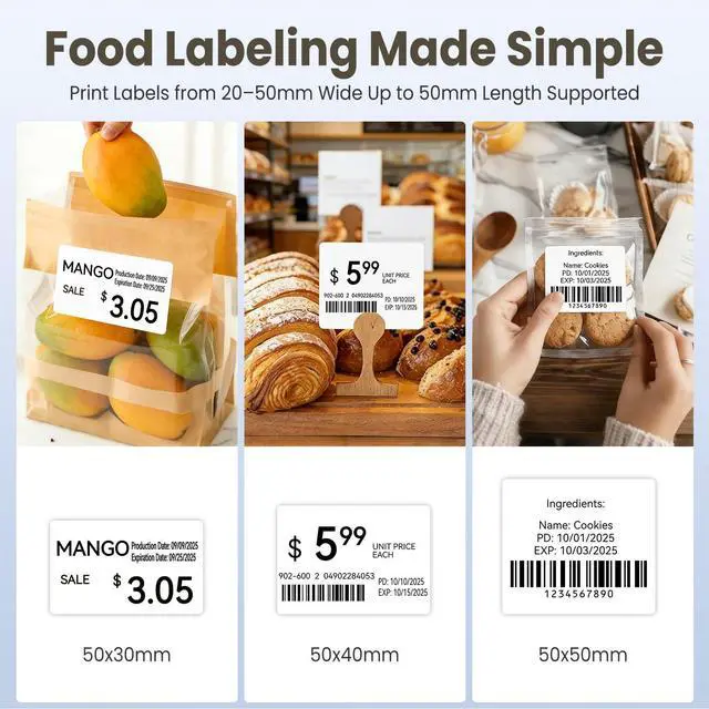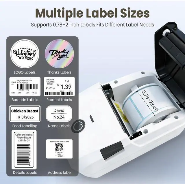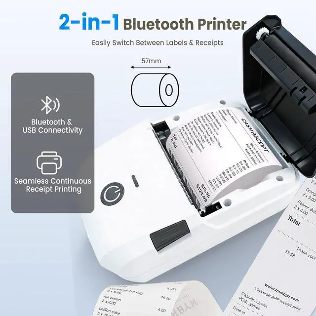 Label Mode and Receipt Modethat can be easily switched with one button to meet different daily needs. It supports a maximum paper size of 50 × 30 mm (1.97" × 1.18"), making it ideal for small labels and mini receipts rather than large or shipping labels. The package includes one roll of 50 × 30 mm label paper for immediate use, while receipt paper needs to be purchased separately for added flexibility.
