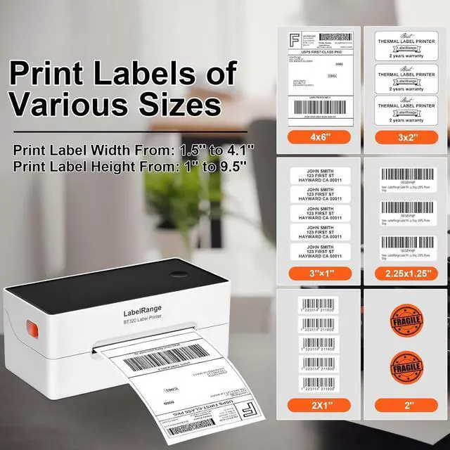 Prints multiple label sizes from 1.5" to 4.1" width