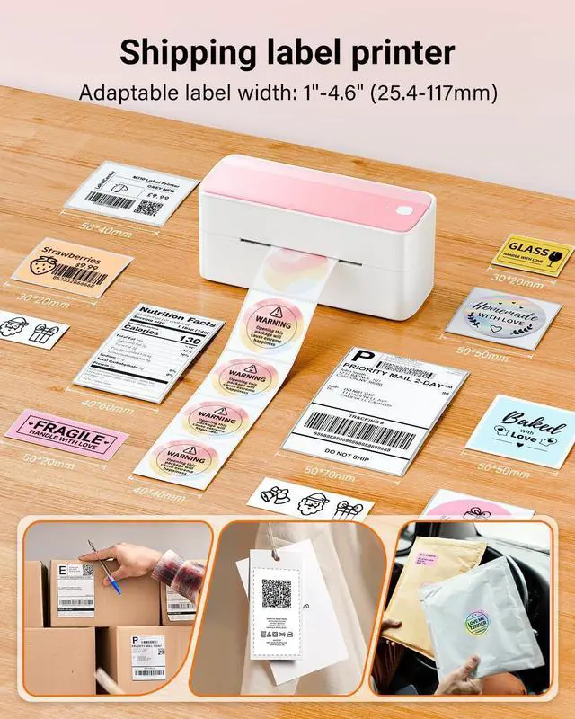 Portable Bluetooth thermal shipping label printer with fast wireless printing for 4x6 labels.