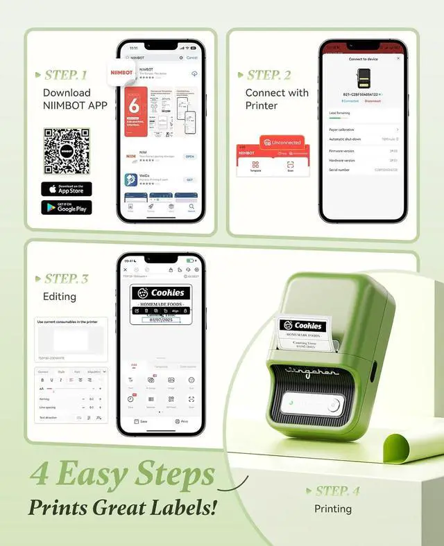 NIIMBOT B21 Label Maker Portable Inkless Thermal Label Printer