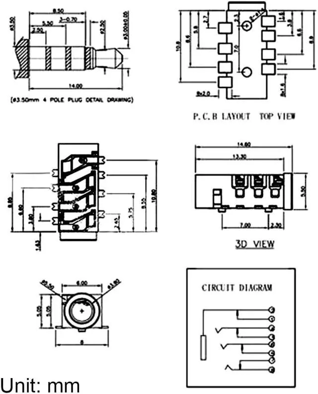 This 8 pins 3.5 mm PCB mounting socket will be an ideal item to replace the broken 3.5 mm PCB socket.