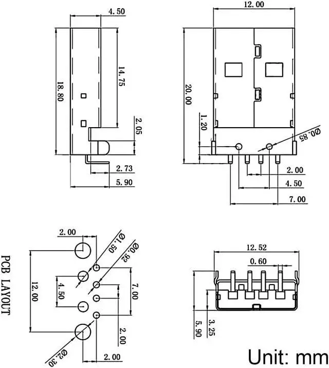 Dimension: 20 x 12 x 4.5 mm (L*W*H)
