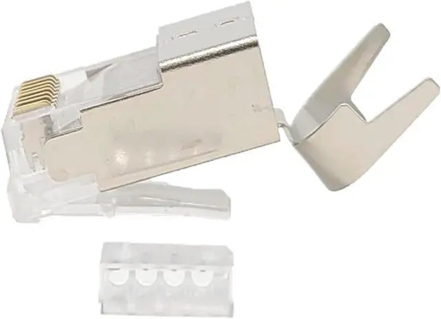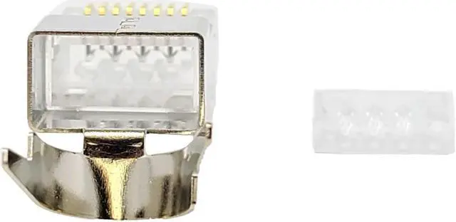 CAT6A / CAT7 RJ45 Connectors made by high-performance shielded housing and the thick gold-plated three-prongs gold-plated contacts ensure fast data transfer speed, reduce pair to pair alien crosstalk, and greatly improve noise immunity at all frequencies.