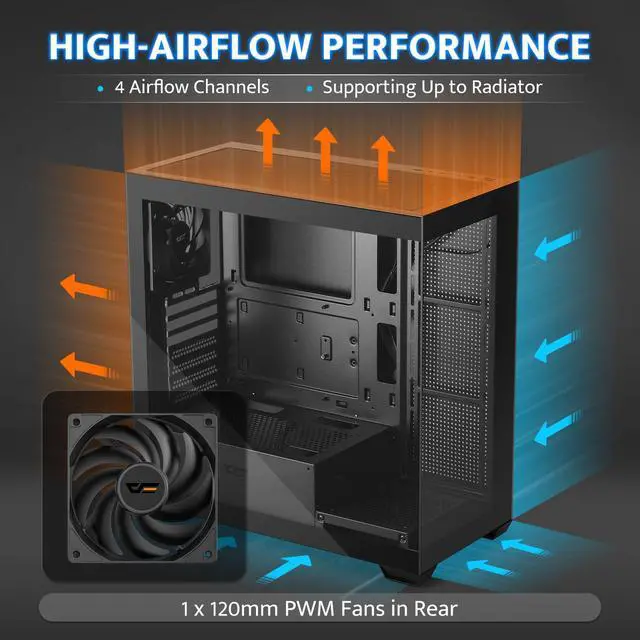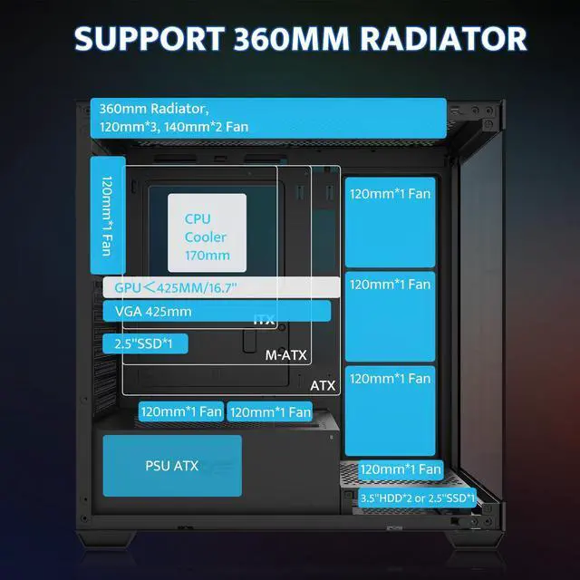 High-Quality Tempered Glass: The panoramic glass computer case features high-quality tempered glass specially designed to be explosion-proof.