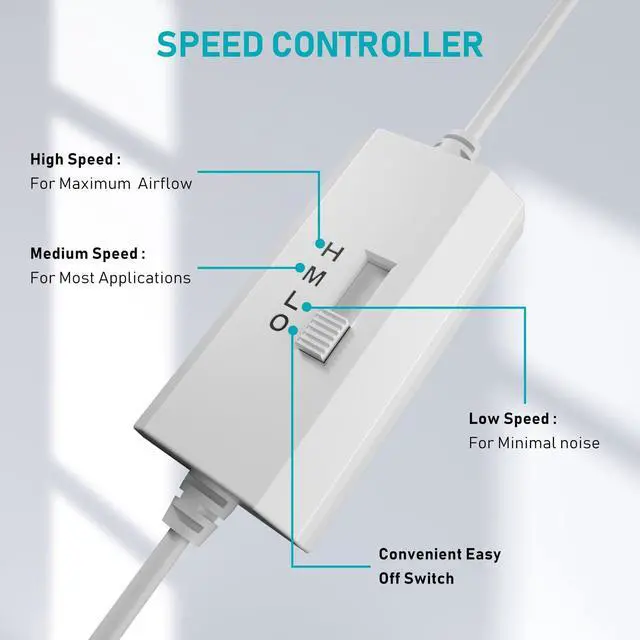 - Features a multi-speed controller to set the fan’s speed to optimal noise and airflow levels.