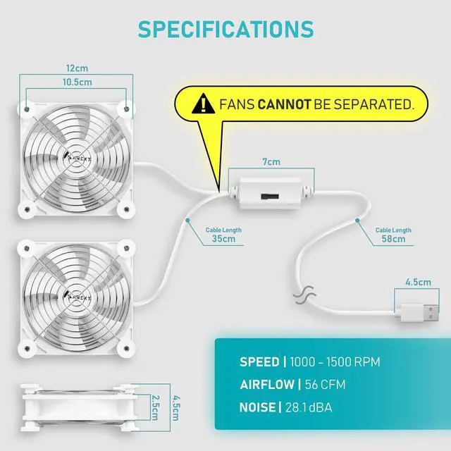 The maximum air volume of ANEXT usb fan can reach 112 CFM, and only 28.1 decibels of noise is generated, keeping your laptop at a suitable temperature