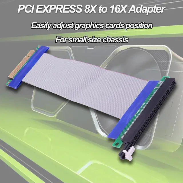 This PCI-E 8x to 16x adapter can freely install PCI-E 16X devices into PCI-E 8X slots according to the size and position of the computer case.