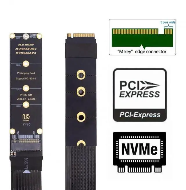 Extend the NVME from 2230/2242/2260/2280 socket to 2230/2240/2260/2280/22110 cable.