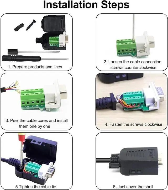 DB9 weld-free male/female adapter. The shell of the product is made of insulating material and has anti-slip function. All copper base design, pure copper plated joint, fine solder joint, anti plug and pull. Suitable for all kinds of communication, network, electronic equipment port.
