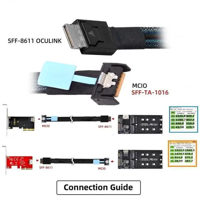 Easy to use: Simply plug in the SFF-8611 end of the cable into your device and the MCIO end into your external hard drive, and you're ready to go.