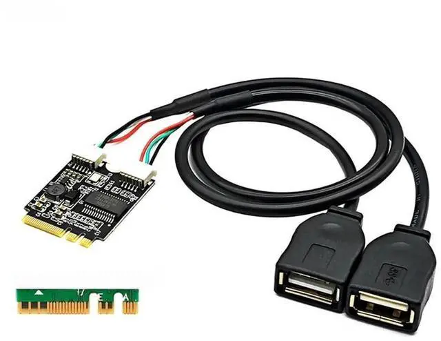 • FOR M.2 Key A/E to 2 Port USB2.0 Riser Card GL850 Chip 30cm USB Extension Cable Laptop M2 WIFI Interface Key A+E to Dual USB Adapter