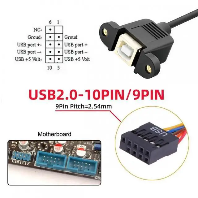 You can convert the 9pin motherboard internal usb 2.0 port to type-B device. Used to connect USB type-B cables in tight fit applications.