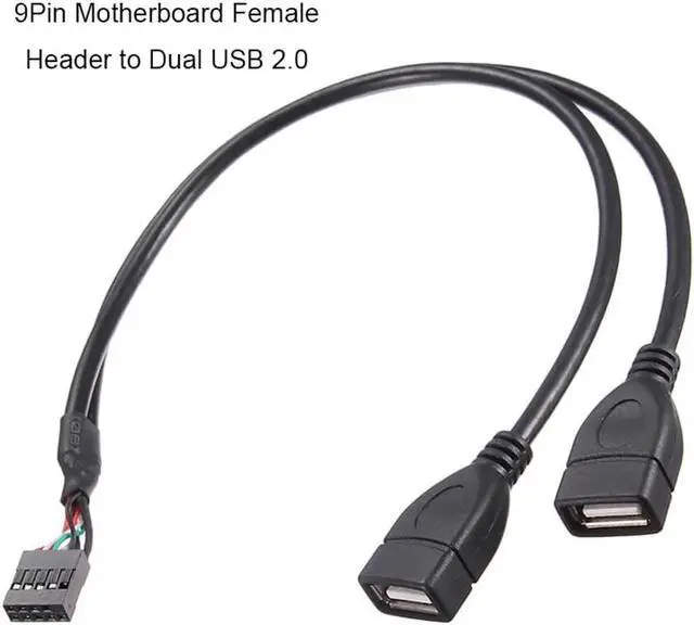 MotherBoard 9Pin Turns USB 2.0 Two Extension Line Main board Female Header to Dual USB 2.0 Female Adapter Cable 11.81"