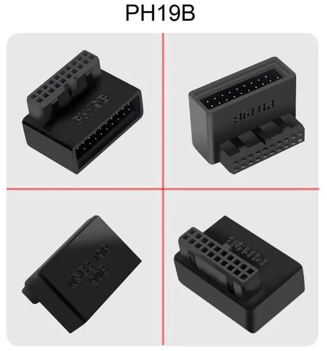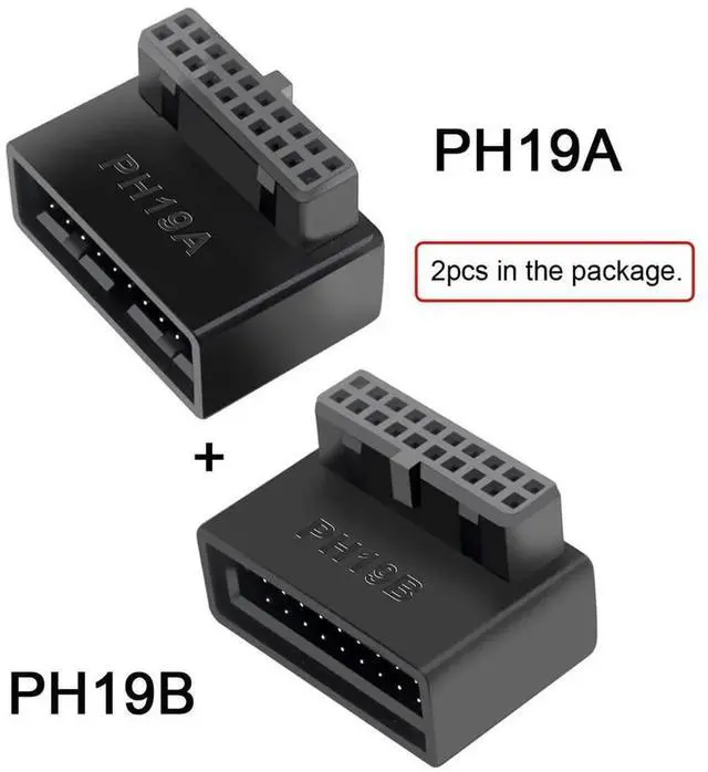 1Set USB 3.0 20pin Male to Female Extension Adapter Up & Down Angled 90 Degree Overmold