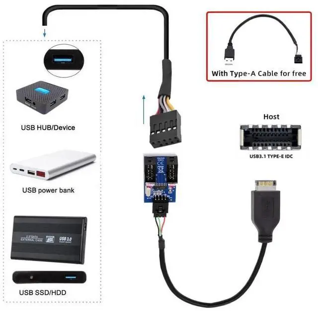 5) It can extend your type-E connector to 4pin connector.You can convert the 20pin Type-E motherboard internal port to usb 2.04pin device. Used to connect USB cables or adapter in tight fit applications.