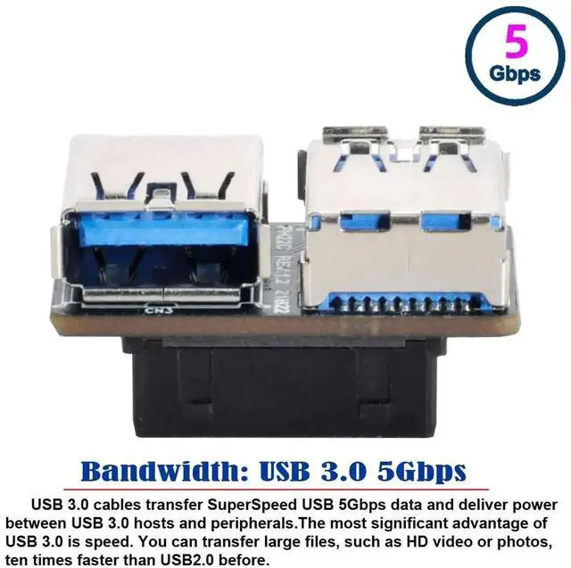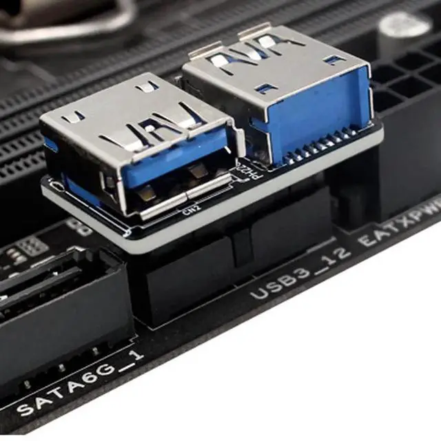 Dual USB 3.0 A Type Female to Motherboard 20/19 Pin Box Header Slot Adapter 5Gbps PCBA