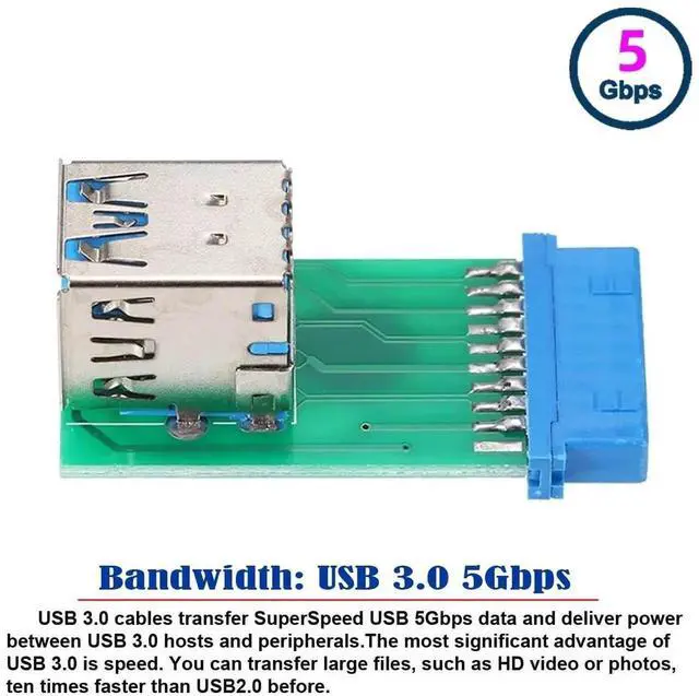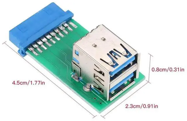 Dual USB 3.0 A Type Female to Motherboard 20/19 Pin Box Header Slot Adapter 5Gbps PCBA