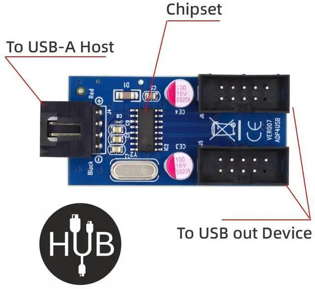 USB 2.0 Type-A Male 1 to 2 Female Motherboard 9pin Header Extension HUB Connector Adapter Port Multilier