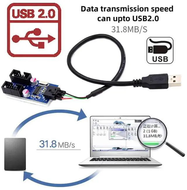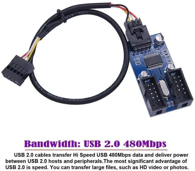Motherboard 9pin USB 2.0 Header 1 to 2 Female Extension Cable HUB Connector Adapter Port Multilier