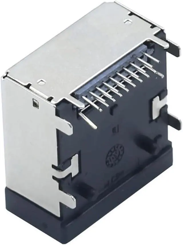 8K Ultra HD Support E-Type 19 Pin female 90° board mount connector compatible with HDMI for high-definition video transmission.