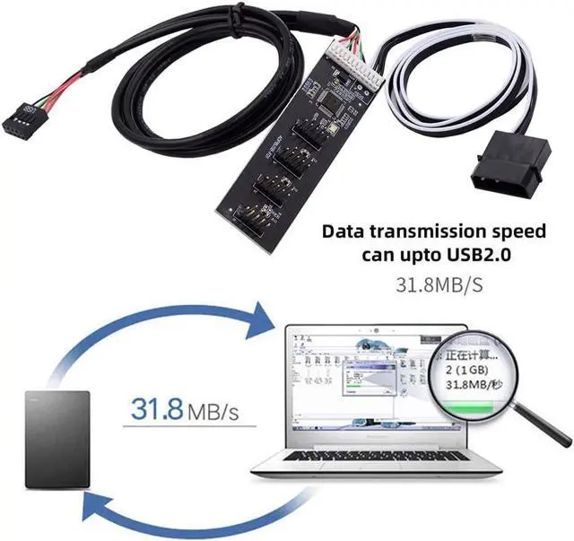 USB 2.0 9pin 10pin Header 1 to 4 Female Splitter Extension Cable HUB with IDE 5V Power Connector Adapter Port Multilier