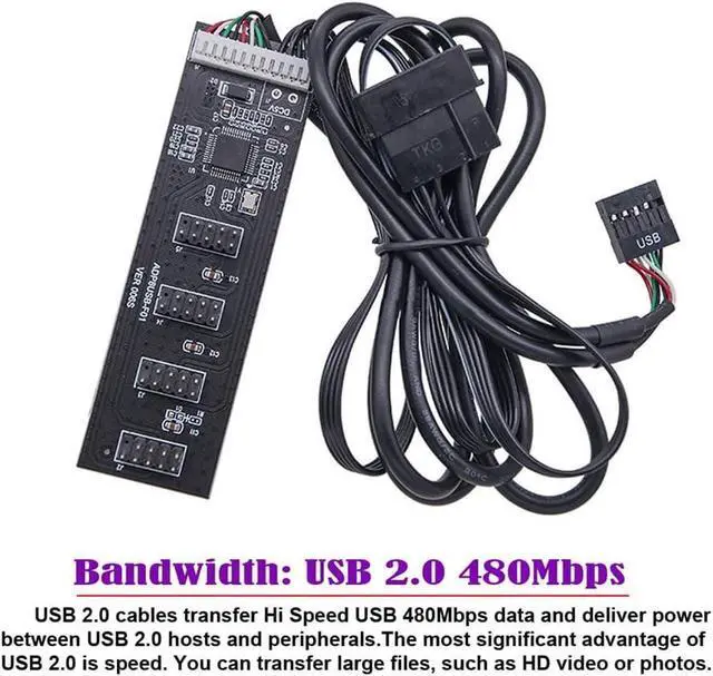 The cable can be used to connect internal usb 9pin devices, e.g. 4 cards with 9pin connector to a controller with usb2.0-9pin connector.