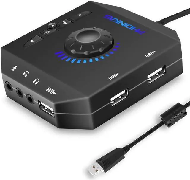 Mixing function: The mixer function can adjust the output electronically. The function keys include microphone mute, speaker mute and volume up/down wheel. Mini LEDs and surround sounds increase the level of game audio. Two headphone jacks with one microphone jack for all your external sound card adapters.