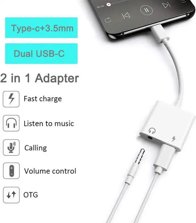 2 in 1 c to 3.5 mm headphone jack adapter with fast charging.