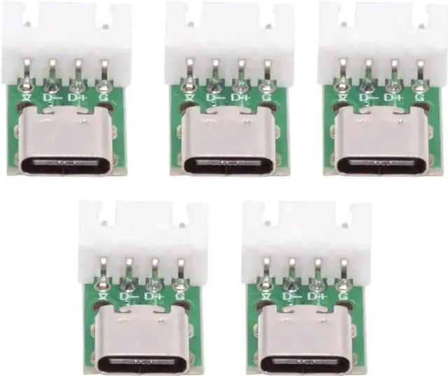 Aomoproing 5 Pack USB C DIY Connector, Pitch 2.54mm 4Pin to USB 2.0 Type C Female Socket Port Repair Replacement Solder Adapter with Wafer Socket