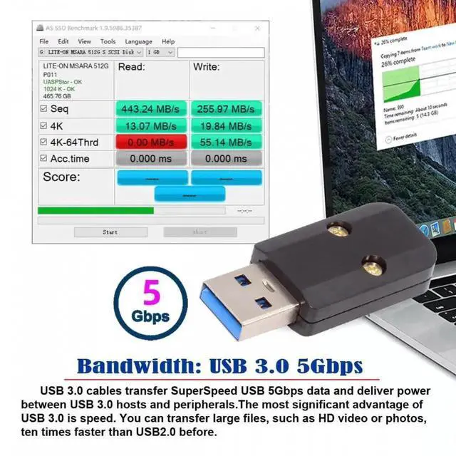 5. Compliant with USB 3.0 Super-Speed (5Gbps), USB 2.0 Hi-Speed (480Mbps), USB 1.1 Low-Speed (1.5Mbps).