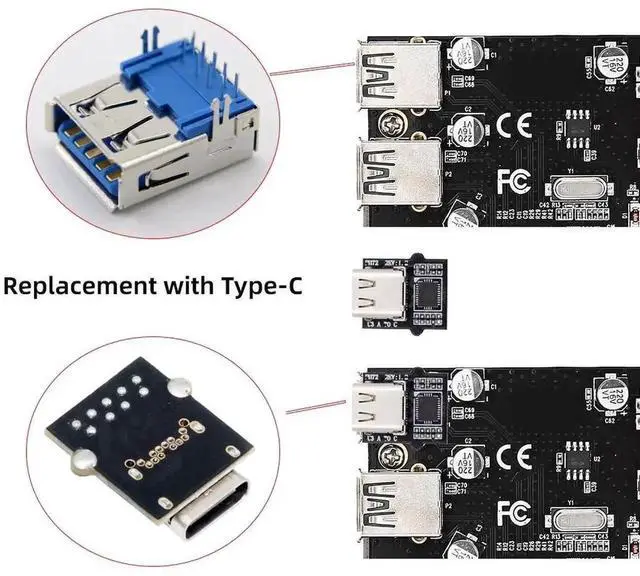 DIY OEM Type-C Female Socket Connector with VL160 Chipset Replace for USB3.0 Type-A Female DIP Type DC 5V Power