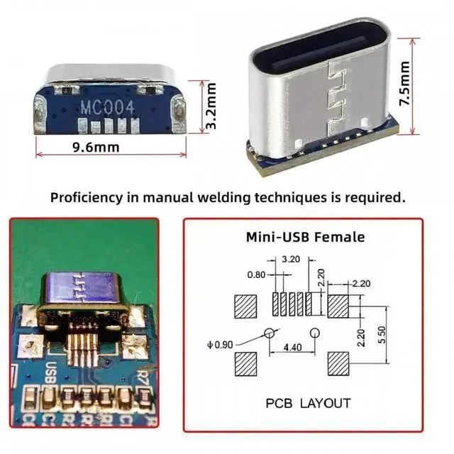 3. The Type-C female connector is replaced for Mini USB 5Pin Female; For DIY OEM solder use.