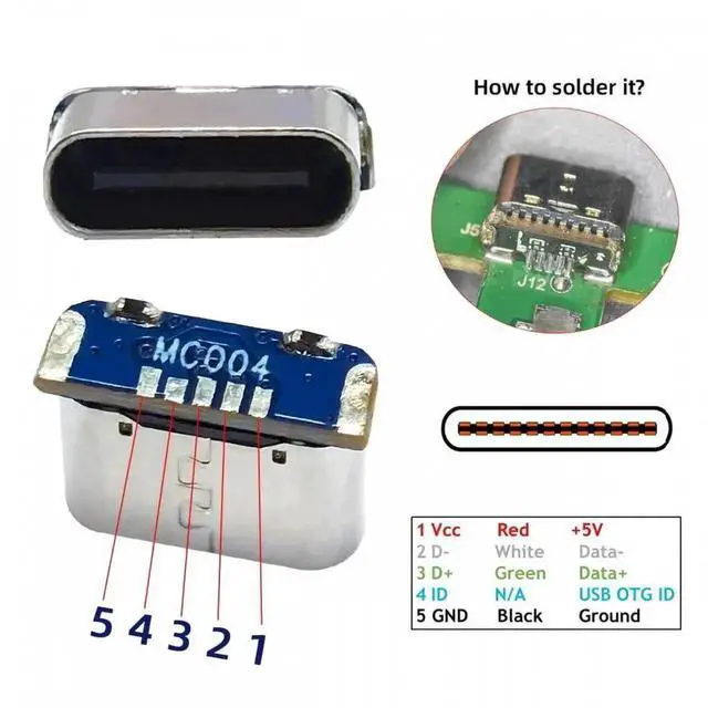 1. 5pcs/lot DIY Solder Type-C Female Socket Connector Replace for Mini-USB 5Pin Female SMT Type DC 5V Power