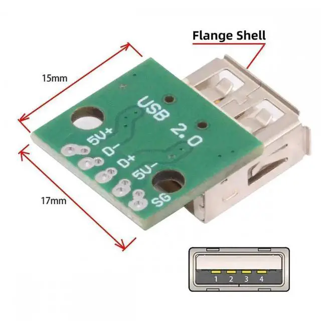 5pcs/set DIY OEM USB2.0 Type-A Female Receptacle Socket Connector with Flange PCB Mounting Assembly Solder Type 480Mbps