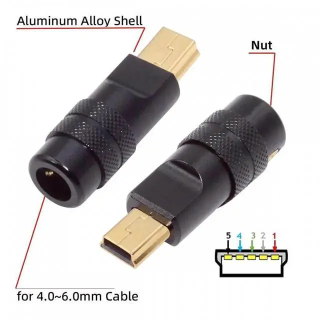 1. Mini USB2.0 5Pin Male Plug Connector Solder Type with Aluminum Alloy Shell Black Customization for 4.0mm~6.0mm Cable