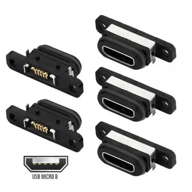 5pcs/set DIY OEM USB2.0 Micro-B Female Receptacle Socket Connector with Mounting Waterproof SMT Type 480Mbps