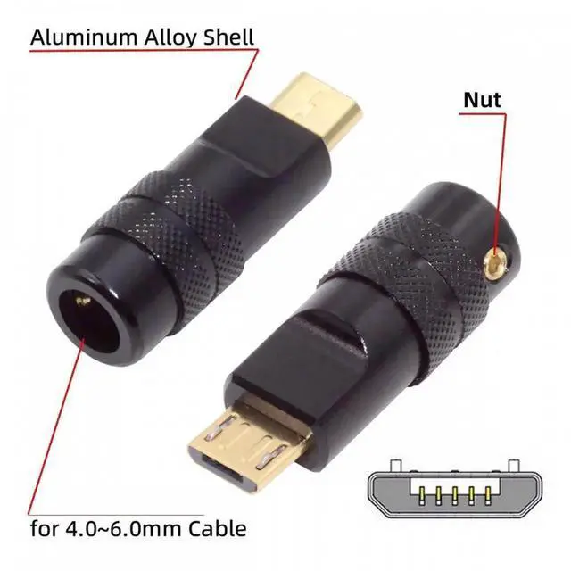 • Micro USB2.0 5Pin Male Plug Connector Solder Type with Aluminum Alloy Shell Black Customization for 4.0mm~6.0mm Cable