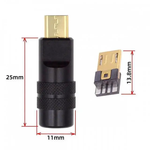 1. Micro USB2.0 5Pin Male Plug Connector Solder Type with Aluminum Alloy Shell Black Customization for 4.0mm~6.0mm Cable