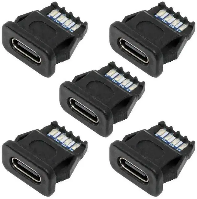 • 5pcs/set DIY OEM Type C Female Socket Connector to 6Pin PCBA Pinout Rectangle Latch Mount Type DC 5V/20V PD Power IP67