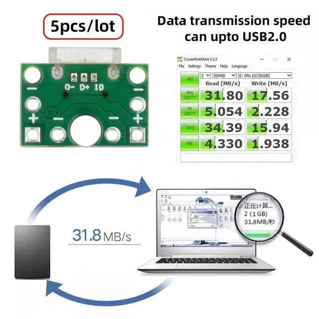 5pcs/set DIY OEM USB2.0 Micro-B Female Receptacle Socket Connector with PCB Assembly Solder Type 480Mbps